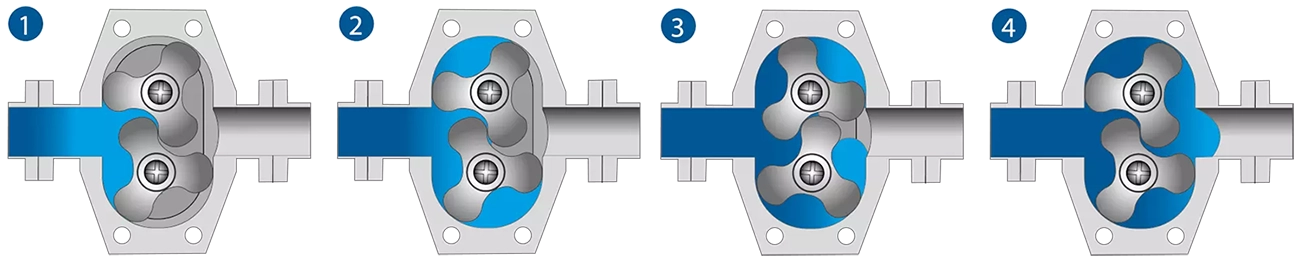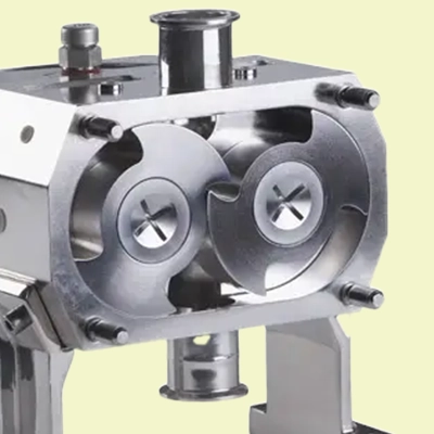 Umywalność i opróżnialność – pompy krzywkowe są w pełni umywalne, a w przypadku montażu pompy z króćcami w pionie, pompa samoistnie się opróżnia. Zapewnia to niezwykle wysoką czystość procesu.
