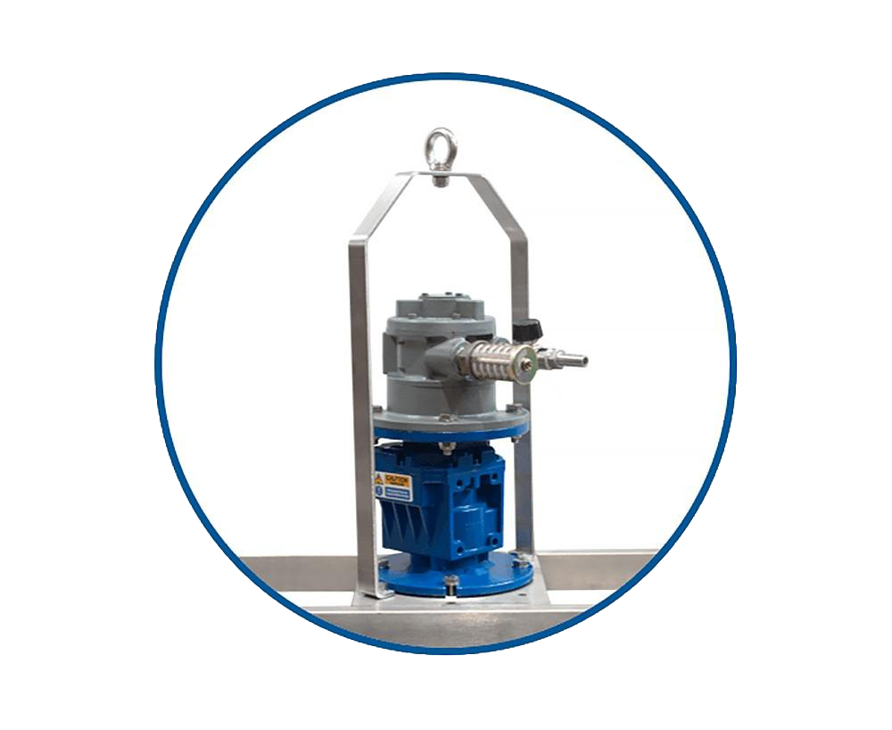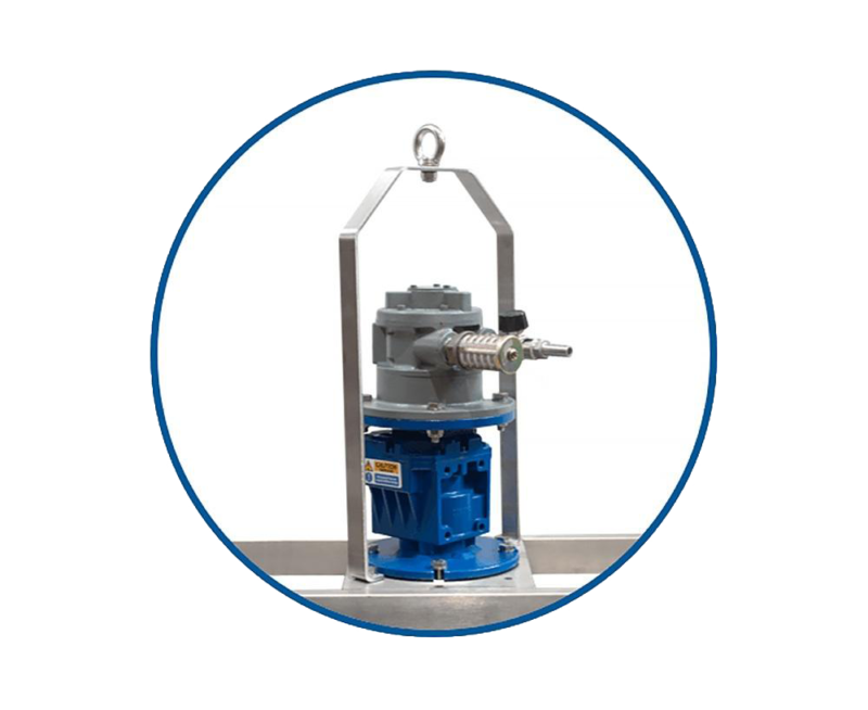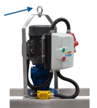 Pierwszym krokiem przed uruchomieniem mieszadła jest zamontowanie go na ramie paletopojemnika IBC. Mieszadło może zostać podniesione ponad pojemnik za pomocą wciągarki, połączonej ze śrubą oczkową standardowo znajdującą się powyżej napędu mieszadła. W przypadku wyboru mieszadła z dodatkowym modułem, do podniesienia można wykorzystać także wózek widłowy, co zdecydowanie ułatwia przenoszenie mieszadła pomiędzy pojemnikami.