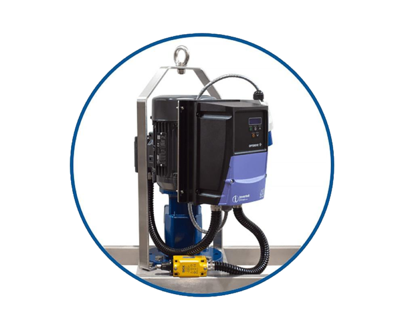 W przypadku napędu elektrycznego, mieszadło zawsze dostarczane jest z odpowiednią wtyczką, a w przypadku zasilania pneumatycznego, z zaworem regulacyjnym, tłumikiem hałasu i szybkozłączem. Mieszadło z napędem elektrycznym uruchamiane jest z poziomu zintegrowanej szafki sterowniczej, lub z panelu falownika. Mieszadło z napędem pneumatycznym uruchamiane jest poprzez stopniowe otwieranie zaworu regulacyjnego. |
