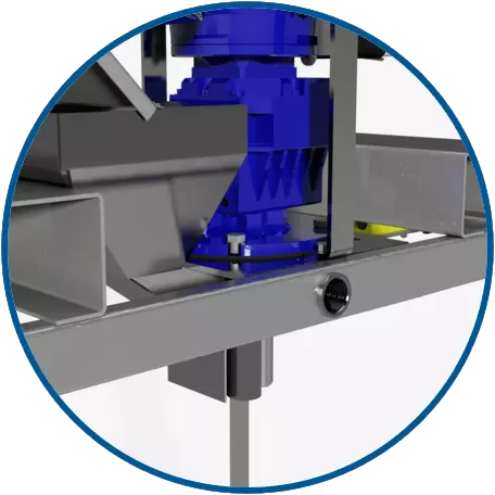 Każde mieszadło IBC zabudowane jest na solidnej ramie, zapewniającej sztywne posadowienie na kontenerze, nawet w przypadku mieszania cieczy o wysokiej lepkości. Rama mieszadła IBC to wytrzymała konstrukcja, wykonana ze spawanych profili ze stali nierdzewnej AISI 304. Standardowo wyposażona jest w śrubę oczkową zainstalowaną powyżej napędu, co pozwala na podnoszenie i opuszczanie mieszadła za pomocą wciągarki. Po posadowieniu ramy na kontenerze IBC, jest ona dodatkowo mocowana za pomocą dwóch zintegrowanych zapięć. Zapięcia te wyposażone są w blokadę położenia, co zapobiega niekontrolowanemu odpięciu ramy.