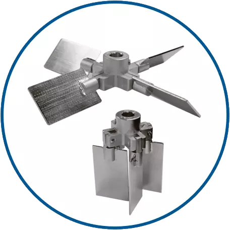 Rozwiązanie dla produktów o wysokiej zawartości cząstek stałych, które sedymentują na dnie pojemnika. Zastosowanie wirnika typu „Kicker” montowanego poniżej wirnika składanego pozwala na ciągłe mieszanie i podbijanie cząstek stałych. Ma on także zastosowanie w przypadku opróżniania pojemnika, kiedy wymagane jest mieszanie medium przy niskim poziomie. Wirnik wykonany jest ze stali nierdzewnej AISI 316.