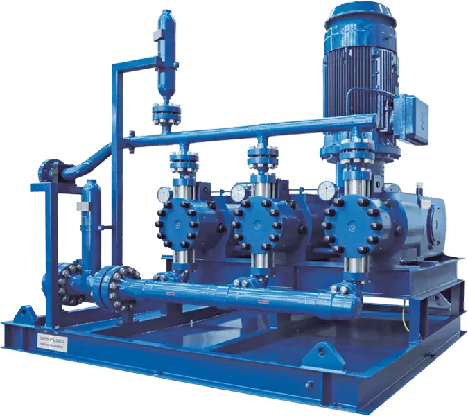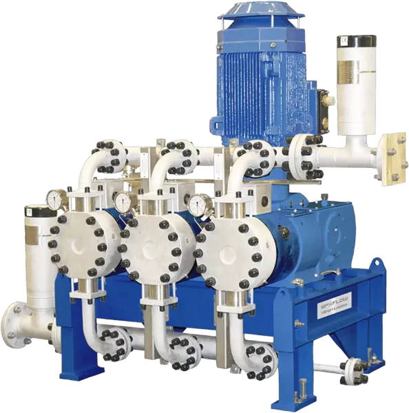 Pompy serii NOVAPLEX to elastyczne, membranowe pompy procesowe o wysokiej wydajności do wysokich natężeń przepływu i ciśnień roboczych. Przeznaczone są do szerokiego zakresu zastosowań – nadają się przede wszystkim do krytycznych instalacji wysokociśnieniowych, w których możliwości tradycyjnych pomp dozujących są przekroczone.