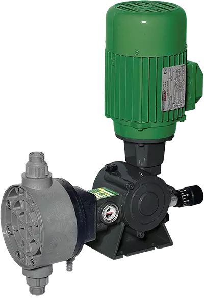 Membranowe pompy dozujące serii SR (B i BR) to tłokowe pompy ze wstępnym napięciem sprężyny przeznaczone do uzdatniania wody i zastosowań przemysłowych. Są one niezawodne i łatwe w konserwacji, z możliwością zastosowania systemu płukania lub odzyskiwania wycieków.