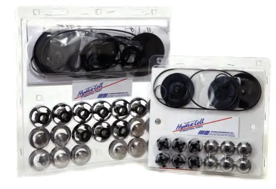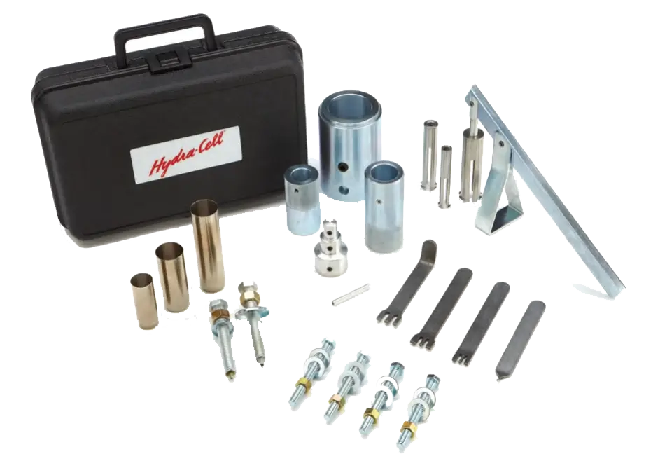 Dostosowane do konkretnego modelu pompy, zestawy narzędzi zapewniają specjalistyczne narzędzia ułatwiające konserwację i serwisowanie pompy. Każdy zestaw jest zapakowany w trwałą plastikową walizkę i zawiera obracacz wału, narzędzie do demontażu gniazda zaworu, podnośnik prowadnicy tłoka, uchwyt tłoka, uszczelkę ochronną, wkładkę uszczelniającą i kołki montażowe.