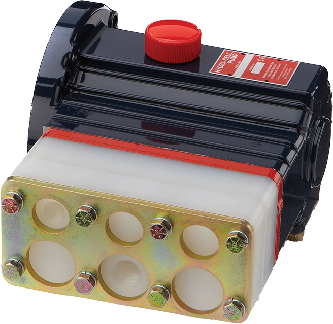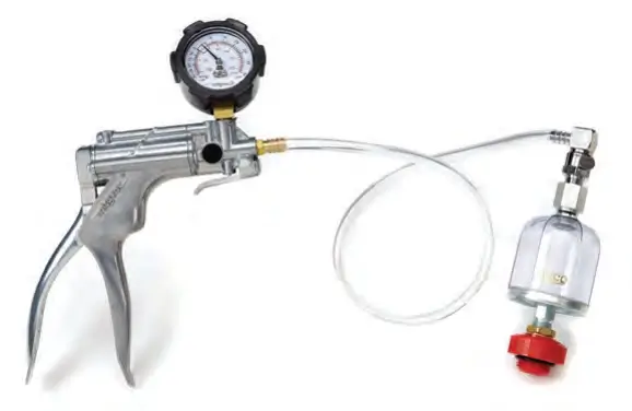 Zestaw próżniowy zapewnia szybki i łatwy sposób zalewania tłoków hydraulicznych po wymianie membrany. Zespół jest przymocowany do strony hydraulicznej poprzez korek oleju i wytwarza podciśnienie, usuwając powietrze zza membran. Zalewanie można wykonać, gdy pompa pozostaje na miejscu.
