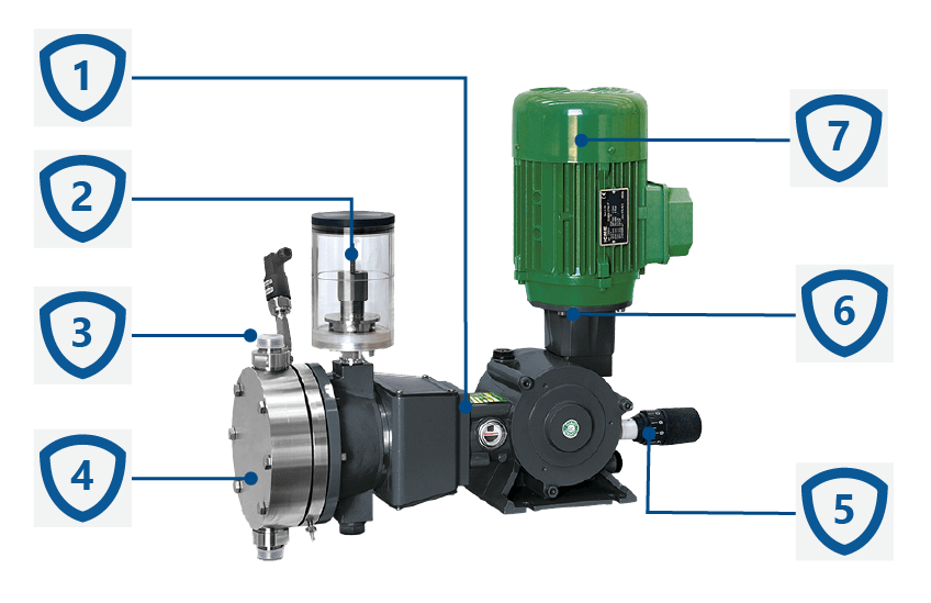 Najważniejszą cechą tej serii pomp jest specjalna membrana warstwowa (dwie membrany z PTFE) oraz niezawodny system wykrywania pęknięcia membrany. Przekłada się to na znaczne zmniejszenie niebezpieczeństwa wycieku dozowanej cieczy z głowicy pompy ze względu na brak uszczelnień hydraulicznych w bezpośrednim kontakcie z pompowaną cieczą. W przypadku pęknięcia jednej z membran, specjalna konstrukcja podwójnej membrany nie pozwala na wydostanie się dozowanej cieczy lub mieszanie się oleju hydraulicznego.