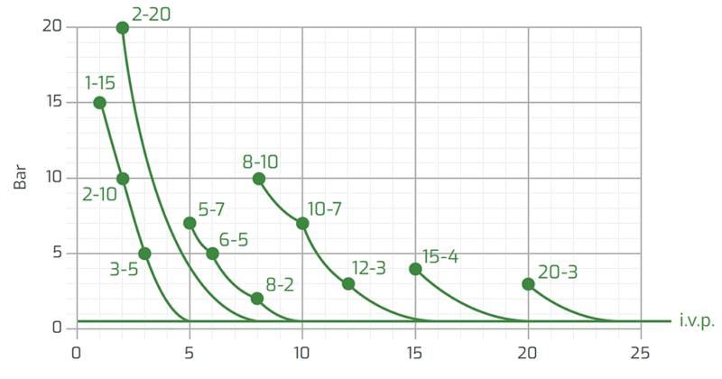 Regulacja za pomocą mikroprocesora na wyświetlaczu LCD 12X2. Wielofunkcyjna lub proporcjonalna poprzez sygnał analogowy lub cyfrowy: 0-20 mA; 1 x n; 1 x n-M. System kontroli poziomu (pompa standardowo dostarczana bez czujnika). |