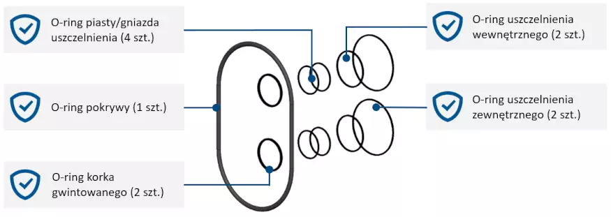 Istnieje możliwość zamówienia zestawów serwisowych dopasowanych do serii TLP, umożliwiających szybką wymianę elementów wymagających rutynowej konserwacji: