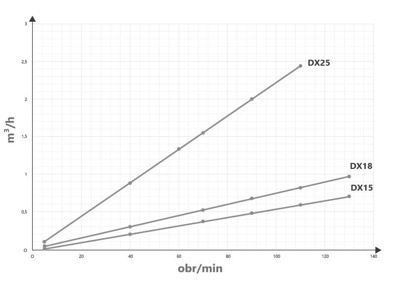 Pompy perystaltyczne o niskich prędkościach roboczych są idealne do produktów delikatnych lub ściernych. Transfer cieczy w pompie perystaltycznej odbywa się wewnątrz węża bez mieszania lub spieniania płynów. Dzięki minimalizacji kontaktu elementów wewnętrznych z pompowanym medium (tylko wąż ma kontakt z cieczą), pompy tego typu są doskonałym rozwiązaniem do przenoszenia produktów korozyjnych. To wszystko sprawia, że te proste w obsłudze i konserwacji pompy perystaltyczne serii DX są doskonale przystosowane do różnych wymagających warunków pracy. Pompy serii DX posiadają także doskonałe właściwości samozasysające – nawet do 9 m – oraz mogą pracować na sucho.