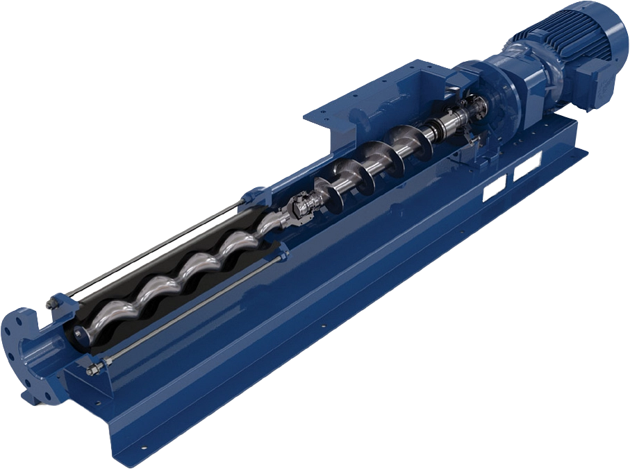 | Pompa śrubowa składa się ze spiralnego rotora obracającego się w spiralnym statorze. Gdy rotor obraca się wewnątrz statora, przestrzeń w kształcie „plastra miodu” porusza się spiralnie wzdłuż osi pompy, nie zmieniając ani kształtu ani objętości. W ten sposób produkt jest przenoszony ze strony ssawnej pompy do strony tłocznej bez jego degradacji. Taka zasada działania pozwala na uzyskanie wysokiej dokładności przepływu oraz ciśnienia, dzięki czemu pompy tego typu są niezwykle wydajne w tłoczeniu i dozowaniu najbardziej wymagających płynów.
