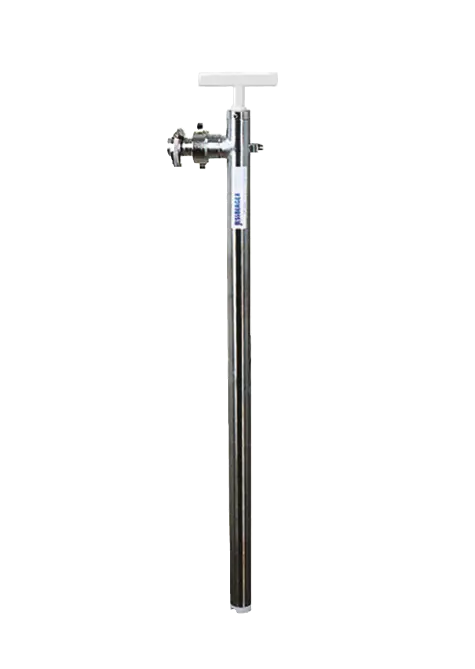 Rura teleskopowa umożliwia uniwersalne zastosowanie pompy do wszystkich wielkości beczek. Wyposażona w złączki gwintowe G 1 ½” i G 2”, pompa z kolankiem odpływowym. Odpływ posiada gwint ¾ ”, co daje dodatkowe możliwości przyłączeniowe.