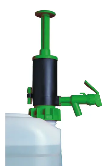 Pompa z manualnym napełnianiem i transferem. Obudowa pompy wykonana z polipropylenu, dostępne w kanistrach od 20 do 200 litrów. W wyposażeniu znajdują się 3 adaptery wlewu o średnicy od 46,5 do 60 mm oraz dostarczany jest 4 częściowy wąż zasysający.