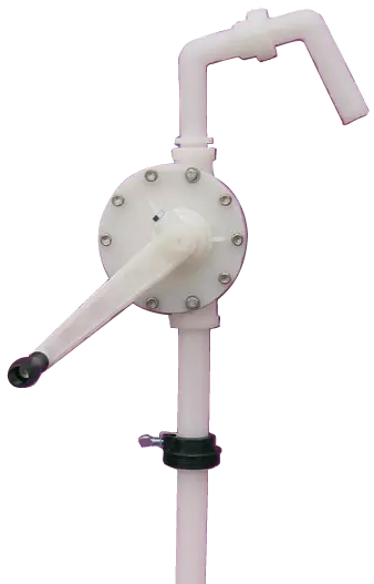Pompa przeznaczona jest dla ciekłych, bardzo agresywnych kwasów i ługów. Pompa obrotowa z ręczną korbą dla chemikaliów