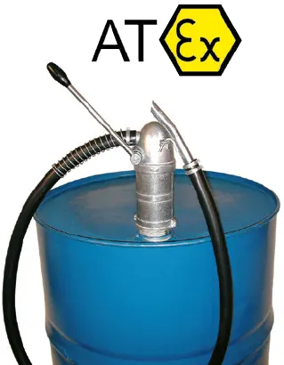Pompa ręczna ze stali szlachetnej JP-17 Mechanizm pompy wykonany ze stal i szlachetnej V2A i V4A, natomiast wszystkie uszczelnienia z PTFE, dlatego też przeznaczona jest do łatwopalnych płynów takich jak rozpuszczalnik ( z wyjątkiem acetonu!) Sprawdzone i atestowane przez TÜV w Monachium pod względem oceny ryzyka zapłonu!