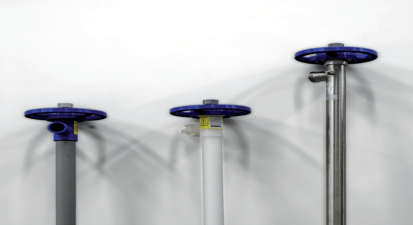 Do każdego z silników dostępne są cztery wykonania rur pompujących: PP, PVDF, stal nierdzewna 316L i aluminium. Dobór ich uzależniony jest głównie od medium, które będzie tłoczone przy pomocy pompy beczkowej. Poszczególne rury mocowane są do silnika w bardzo prosty sposób. Wymiana silników pomiędzy rurami odbywa się bez narzędzi, wystarczy ręcznie odkręcić „flanszę mocującą”.