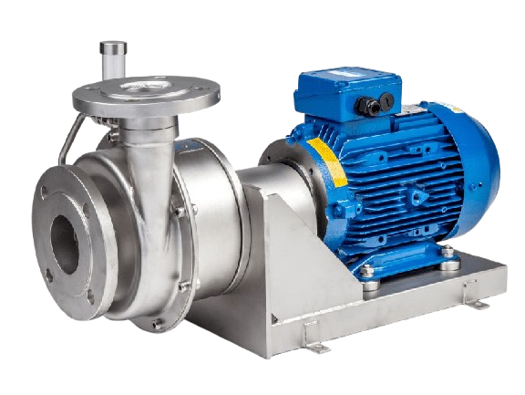 Wykonanie z wyprowadzonym wałem – Idealne rozwiązanie w przypadku pompowania gorących cieczy do 180°C, dzięki zwiększeniu odległości pompy od silnika. Kompletny agregat pompowy na podstawie, ze sprzęgłem i osłoną sprzęgła.