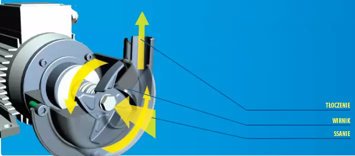 Energia ciśnienia powstaje częściowo przez wzrost energii kinetycznej cieczy, dzięki nadaniu tym cząsteczkom odpowiedniego przyspieszenia za pomocą wirnika. To zdarzenie powoduje występowanie kolejno zjawiska tłoczenia cieczy z wnętrza urządzenia pompującego wprost do przewodu tłocznego.