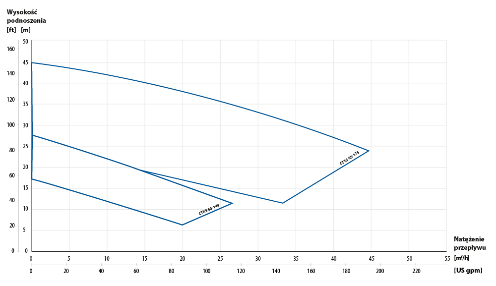 | Ciśnienie nominalne dla 20 °C | PN10 – CTX 40-165, CTX 50-145, CTX 50-200, CTX 65-175 PN16 – CTX 65-230, CTX 65-240, CTX 80-205, CTX 80-212, CTX 80-260, CTX 100-230 |