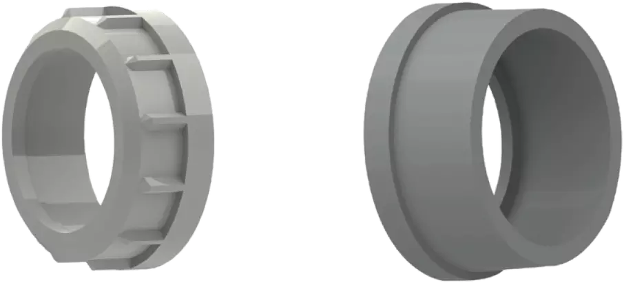 W celu ułatwienia instalacji pompy w systemie rurociągów, firma Tapflo oferuje kilka przyłączy i adapterów. W celu zapewnienia maksymalnej elastyczności standardem jest gwintowane przyłącze R. Jest to tuleja łącząca dostosowana do każdego prostego gwintu rurowego i jest dostarczana w komplecie z O-ringiem. |