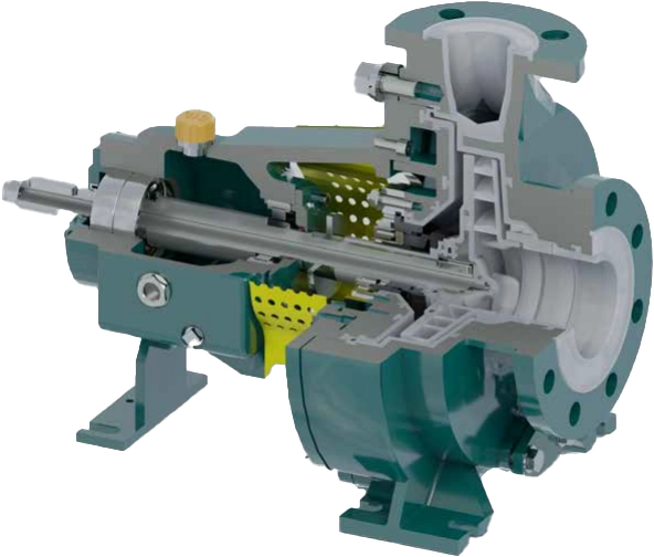 Pompy serii UCL charakteryzuje doskonała niezawodność mechaniczna i optymalna odporność chemiczna. Osłona z żeliwa sferoidalnego chroni fluoroplastyczne powierzchnie peryferyjne pompy przed naprężeniami w rurach, wibracjami, uderzeniami z zewnątrz i podczas przenoszenia; ponadto pozwala na uzyskanie odporności obudowy na działanie próżni. Problem odwrotnych obrotów podczas rozruchu został wyeliminowany dzięki systemowi napędu wpustowego. Standardowe łopatki tylne zmniejszają nacisk osiowy i ciśnienie w komorze uszczelnienia, gwarantując niezwykłą trwałość łożyska oraz uszczelnienia.
