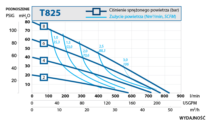 Głównymi zaletami tych pomp jest bezolejowy dystrybutor powietrza, bezobsługowe zawory zwrotne i możliwość pełnej wizualizacji kontroli wszystkich części stykających się z cieczą.