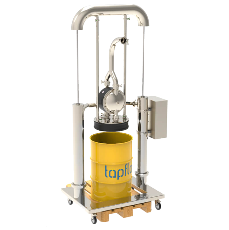 Ostatnim etapem rozładunku beczki jest zdjęcie pokrywy z pustej beczki. Aby ułatwić i przyspieszyć tę operację, system zapewnia sprężone powietrze między pokrywą a beczką.